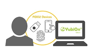 クラウドサービスからソフトウェアをダウンロード・インストールするだけで「YubiKeyなどの認証デバイス」を使ったパスワードレスの多要素認証を実現します。