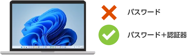 Windowsアカウントのパスワード(知識)と認証器(所持)による、2要素認証でセキュリティを強化します。